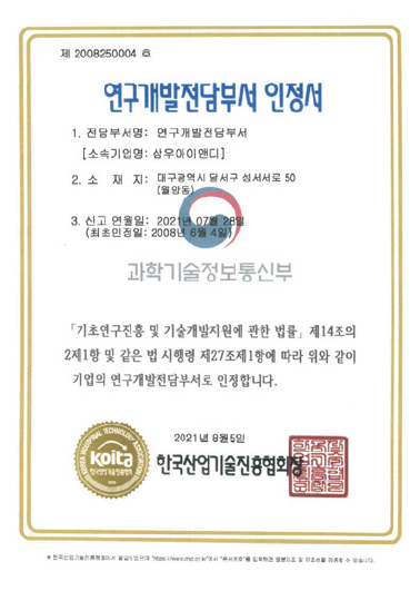 연구개발전담부서 인정서